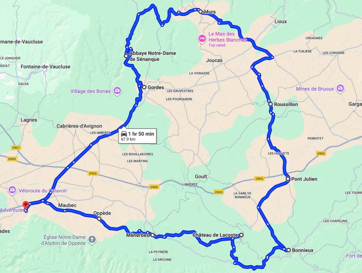 Autour de la splendide vallée du Luberon, on découvre de nombreux villages perchés aux maisons de pierre dorée, tels que Gordes, Bonnieux, Ménerbes, Lacoste et Oppède. Flânez dans ces charmants villages et admirez leurs boutiques et galeries d'art. À Lacoste, grimpez jusqu'au vieux château et contemplez le panorama sur la vallée. Près de Gordes, ne manquez pas le village des Bories et ses cabanes de bergers en pierre sèche. L'abbaye cistercienne de Sénanques offre un spectacle saisissant, surtout en juin/juillet lors de la floraison de la lavande. À Roussillon, le Sentier des Ocres est un incontournable : promenez-vous au milieu des falaises aux teintes ocres, du rouge au rose en passant par le jaune et le rouille. Les maisons du village reflètent cette palette chaleureuse.